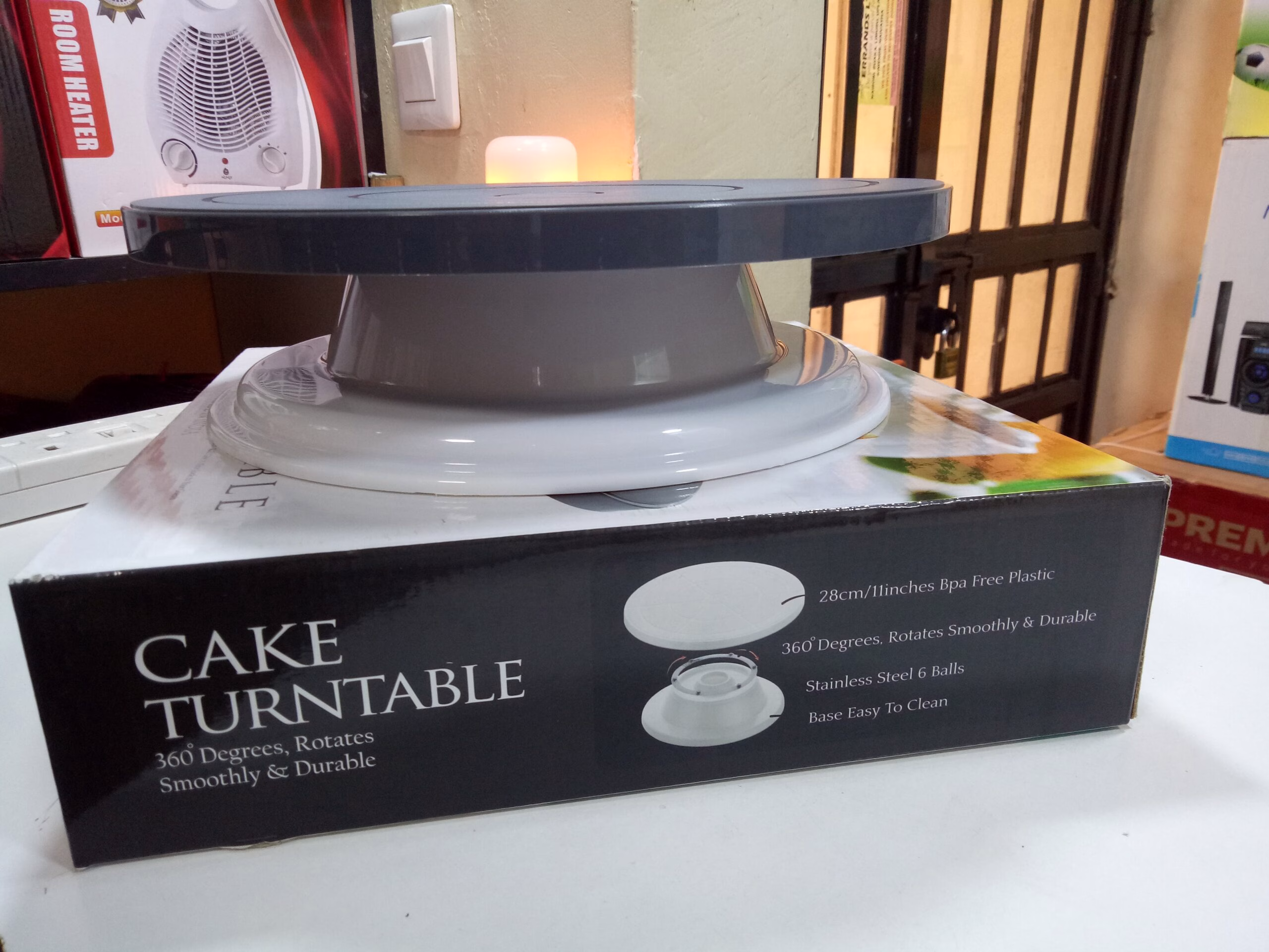 - A 360° cake turntable is a revolving cake stand that provides a smooth rotation, allowing for easy cake decorating at all angles.