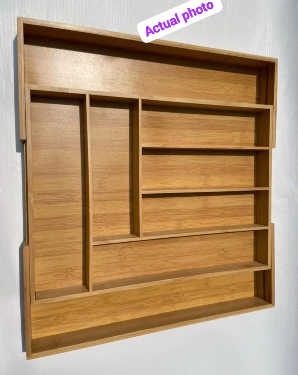 Keep your kitchen neat and stylish with this 42Γ50cm Bamboo Cutlery Drawer Organizer. Crafted from eco-friendly bamboo, it offers a natural, durable solution for organizing forks, knives, spoons, and other utensils. The spacious design fits most standard drawers, while the smooth finish adds a touch of elegance to your kitchen. With multiple compartments, it ensures everything has its place, making meal prep and dining more efficient. Strong, sustainable, and easy to clean, this organizer is the perfect blend of functionality and modern design.