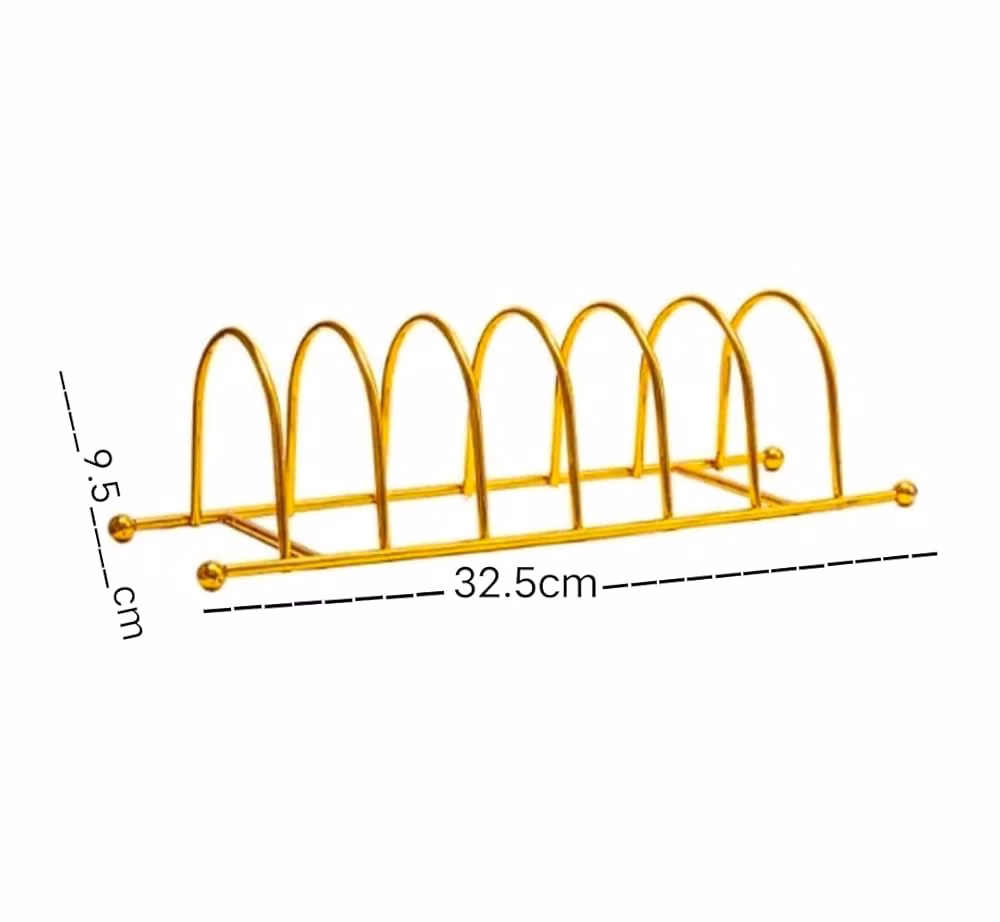 The 7 Slot Golden Plate Stand 🍽️✨ is a chic and functional organizer designed to keep plates, lids, or trays neatly arranged while adding a touch of elegance to your kitchen or dining space. Crafted from sturdy metal with a golden finish, it combines durability with a decorative appeal, making it suitable for both everyday use and special occasions. Its seven slots provide ample storage, allowing you to keep items upright and easily accessible, whether for cooking, serving, or display. Compact in design, it saves countertop or cabinet space while doubling as a stylish accent piece