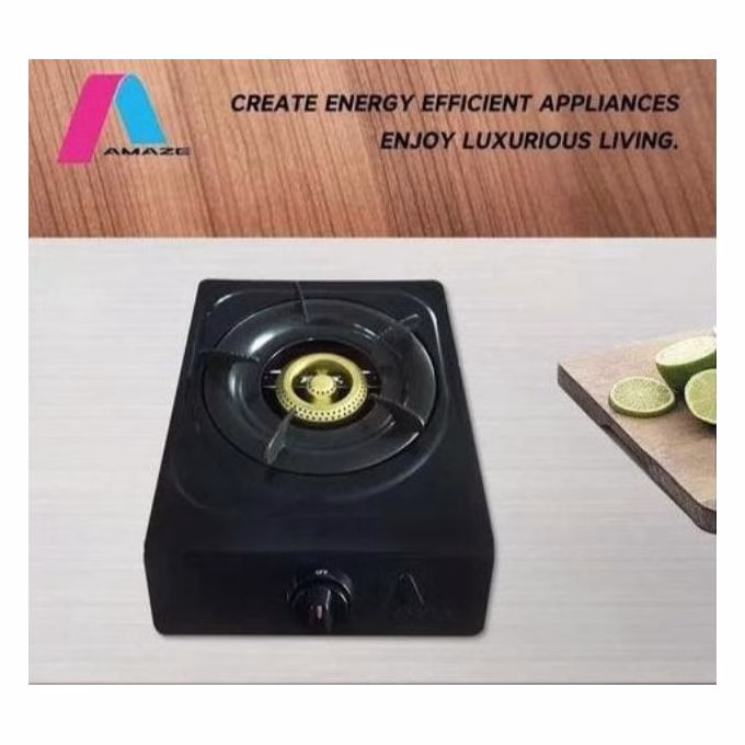 The Amaze Black Single Burner Tabletop Gas Cooker is a compact and efficient cooking appliance, perfect for small kitchens, apartments, or outdoor cooking. Here are some key features: