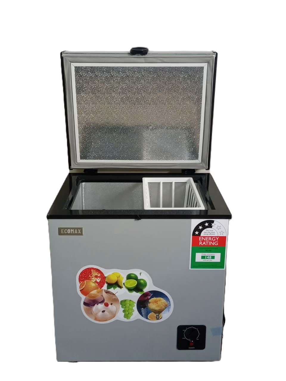 The Ecomax BD-60 60L Chest Freezer is a compact and efficient appliance designed to meet the needs of small households or limited spaces. It features a high-efficiency compressor that ensures quick and effective freezing, maintaining the freshness of your stored items. The freezer operates quietly, making it suitable for any environment without causing disturbances. With a capacity of 60 liters, it provides ample space for storing a variety of frozen goods, and the removable basket helps in organizing the interior for easy access. The hinged insulated lid ensures perfect retention of temperature and easy access to the contents. This chest freezer is an excellent choice for those looking to maximize storage efficiency in a compact design.