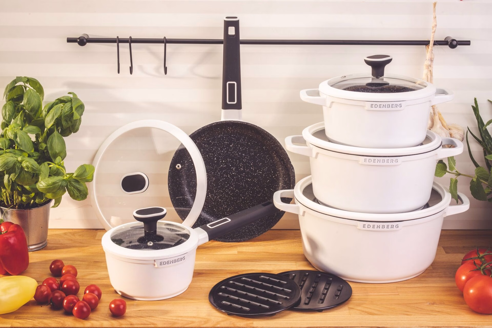 🍲 The Edenberg EB5646 12pcs Cookware Set is a premium collection designed to bring style, durability, and efficiency to your kitchen. Crafted from high-quality materials, this set ensures even heat distribution for perfect cooking results every time. With 12 essential pieces, including pots, pans, and lids, it provides everything you need for boiling, frying, stewing, or simmering. The elegant design with a sleek finish adds a touch of sophistication to your kitchen décor, while the ergonomic handles offer comfort and safety during use. Easy to clean and built to last, the Edenberg EB5646 Cookware Set is ideal for both everyday meals and special occasions, making it a must-have for home chefs who value quality and convenience.