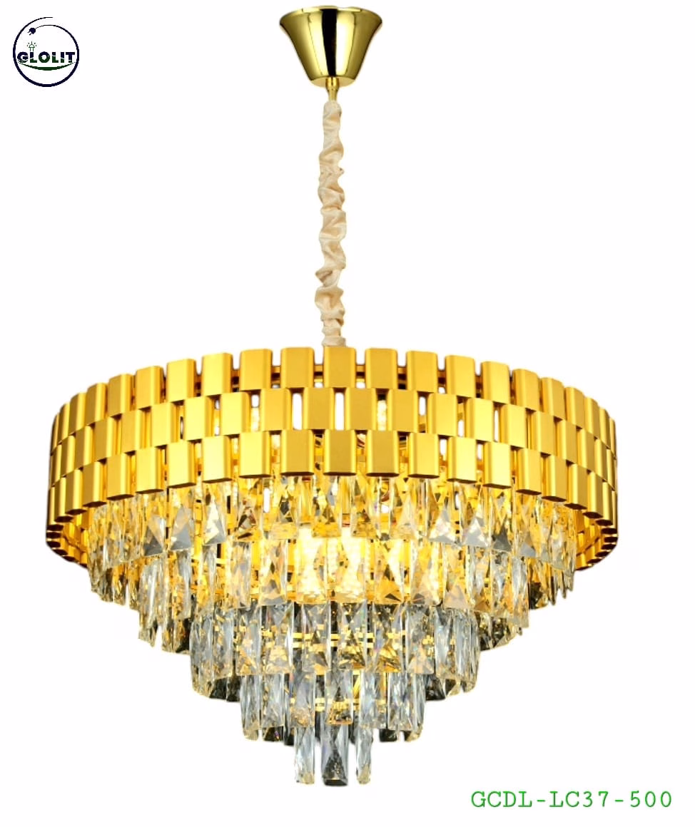 The Glolit LC37 Gold 5-Tier Chandelier is a luxurious and elegant lighting fixture that can elevate the ambiance of any room. This chandelier features five tiers of lights, providing ample illumination and a sophisticated look. The gold finish adds a touch of opulence, making it a perfect centerpiece for dining rooms, living rooms, or entryways. Constructed from high-quality materials, it ensures durability and a premium finish. Its modern and stylish design makes it an excellent choice for those looking to enhance their interior decor with a statement piece.