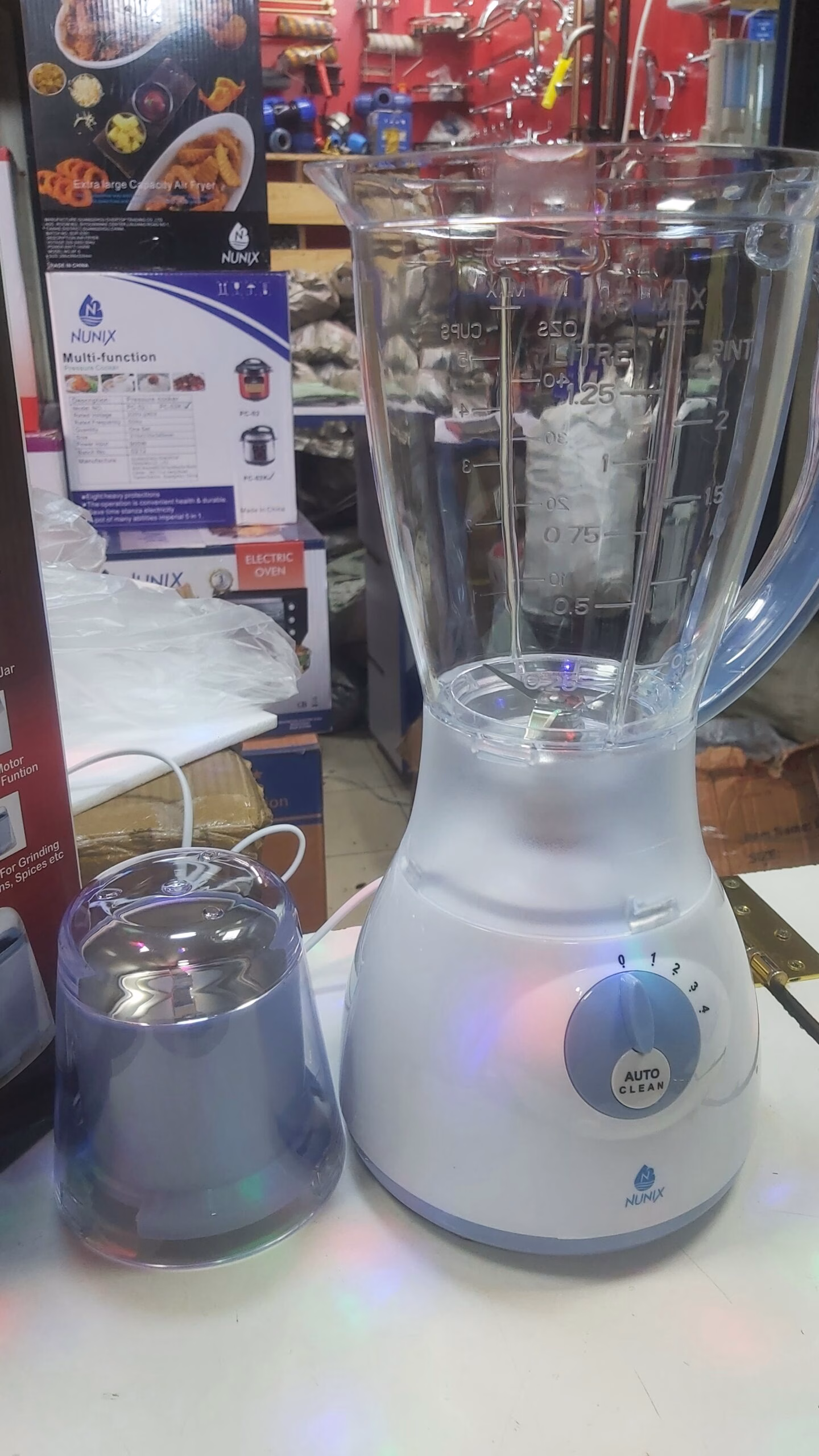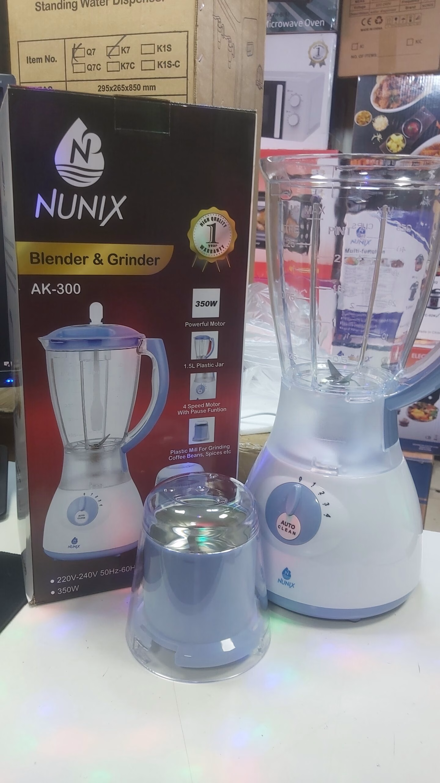 The Nunix AK-300B is a versatile kitchen appliance that offers the convenience of blending and grinding in one unit. With a 1.5-liter jug capacity, it is well-suited for preparing smoothies, purees, or grinding spices and coffee beans. The blender operates at 350 watts and offers multiple speed settings, including a pulse function, to handle a variety of food textures. Safety features such as overheat protection and a securely locking lid ensure safe operation during use. This model is noted for its affordability and comes with a one-year warranty on the motor, providing consumers with confidence in their purchase.