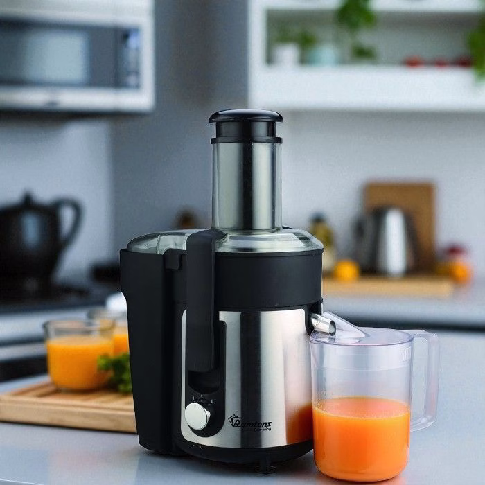 The Ramtons RM/598 Juice Extractor makes preparing fresh juices simple and efficient. Powered by an 800-watt motor, it offers two speed settings plus a pulse function to handle both soft and hard fruits with ease. The stainless-steel micro-mesh filter ensures maximum juice extraction while preserving nutrients, and the wide feed tube accommodates whole fruits, reducing prep time. With a 1.0L juice cup and 1.3L pulp container, it’s designed for continuous juicing without frequent emptying. Safety features like a locking arm and double switch protection provide peace of mind, while its sleek black-and-silver design adds a modern touch to any kitchen. Smooth operation and low noise make it a practical choice for everyday use.