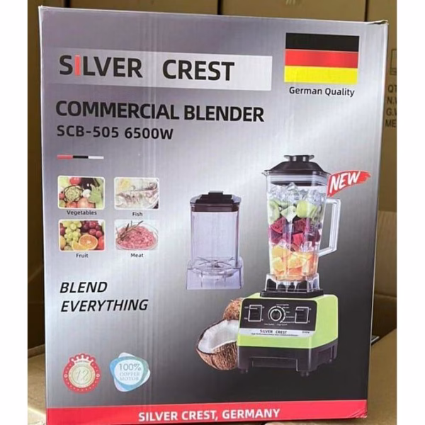 The Silvercrest SCB-505 6500W 2-in-1 Professional Blender is a high-performance kitchen appliance designed for both home and light commercial use in Nairobi. With a powerful 6500W copper motor and a large 2-liter jar, it effortlessly handles tough ingredients like ice, frozen fruits, and nuts, making it ideal for smoothies, soups, sauces, and even grinding meat. The blender features stainless steel blades, variable speed control, and a multifunctional design that supports blending and grinding tasks. Its heavy-duty build ensures durability, while the sleek design fits well into modern kitchen setups.