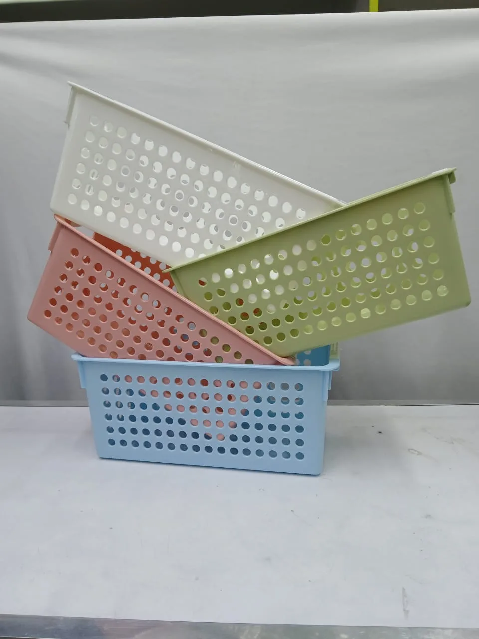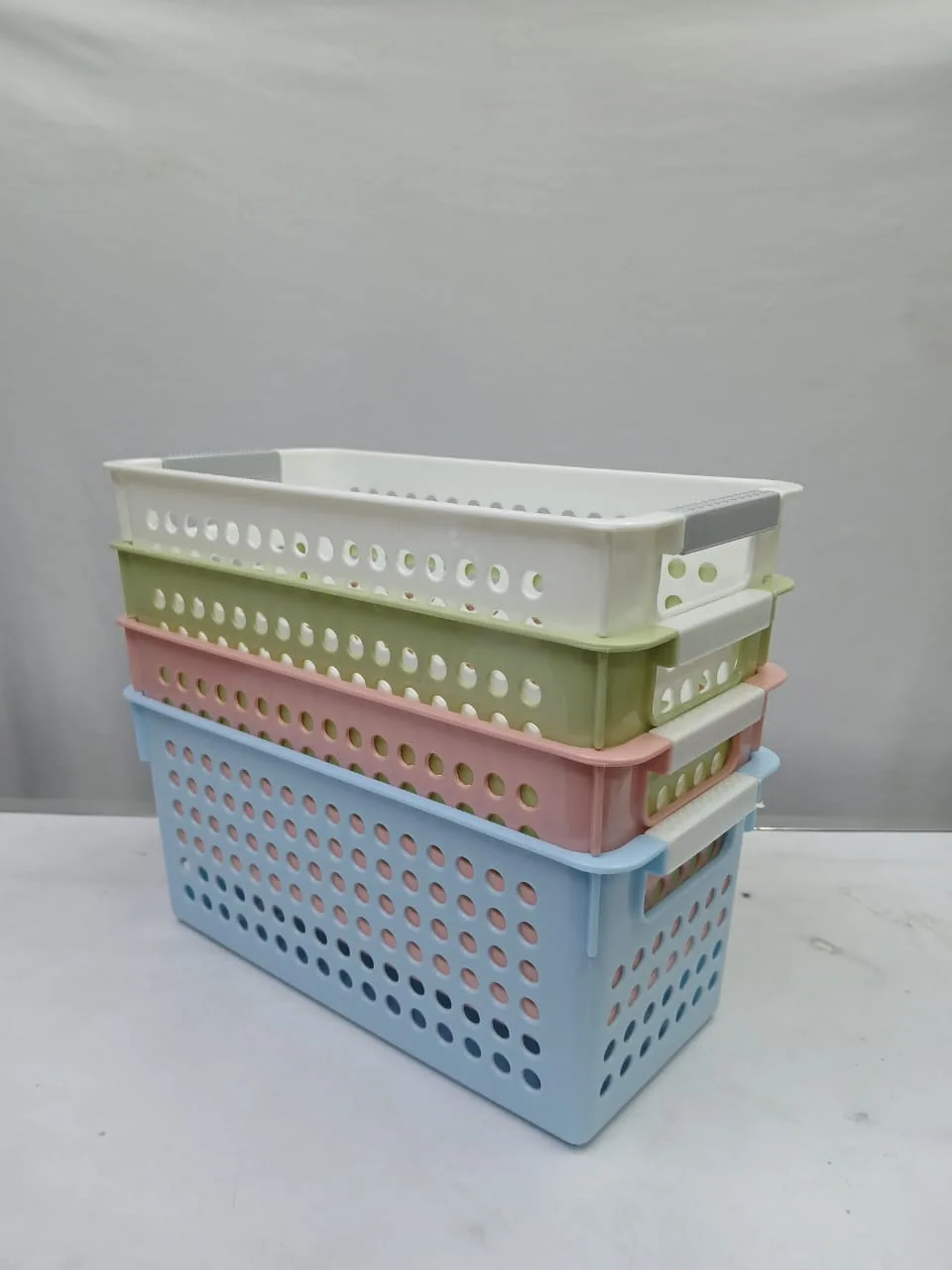 โจ The Small Plastic Storage Baskets / Organizers are a versatile and stylish solution for keeping your home or office neat and clutter-free. Made from durable, lightweight plastic, these baskets are perfect for storing toiletries, cosmetics, stationery, kitchen supplies, or even small toys. Their compact size makes them ideal for shelves, drawers, and countertops, helping you maximize space while keeping essentials within easy reach.