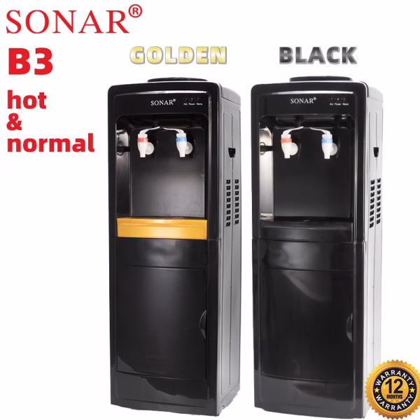 The Sonar B3 Hot and Normal Water Dispenser is a sleek, compact, and affordable appliance designed for both home and office use. It features dual taps that provide hot water for quick beverages like tea or coffee, and normal room-temperature water for everyday hydration. Built with energy efficiency in mind, it includes a child safety lock to prevent accidental burns and, in some models, a bottom storage cabinet for cups or small accessories. Its modern black finish makes it a stylish addition to kitchens, wellness corners, or office setups.