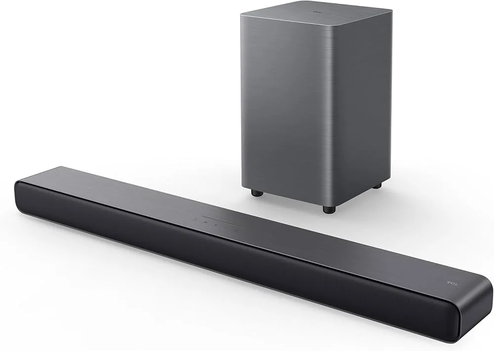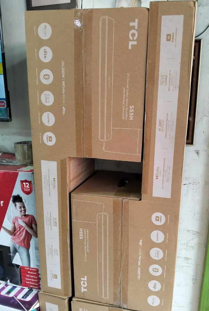 The TCL S55H 2.1 Channel SoundBar is designed to transform your home entertainment experience with powerful, immersive audio. Featuring a sleek, modern design that complements any living room setup, it delivers clear dialogue, rich bass, and dynamic sound for movies, music, and gaming. With wireless connectivity and multiple input options, it’s easy to integrate into your home system for a clutter‑free setup.